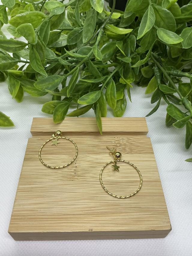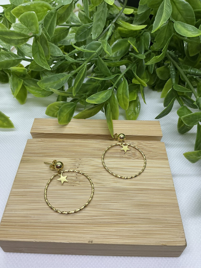 Créoles Torsadées Acier Inoxydable Doré avec Pendentif Étoile